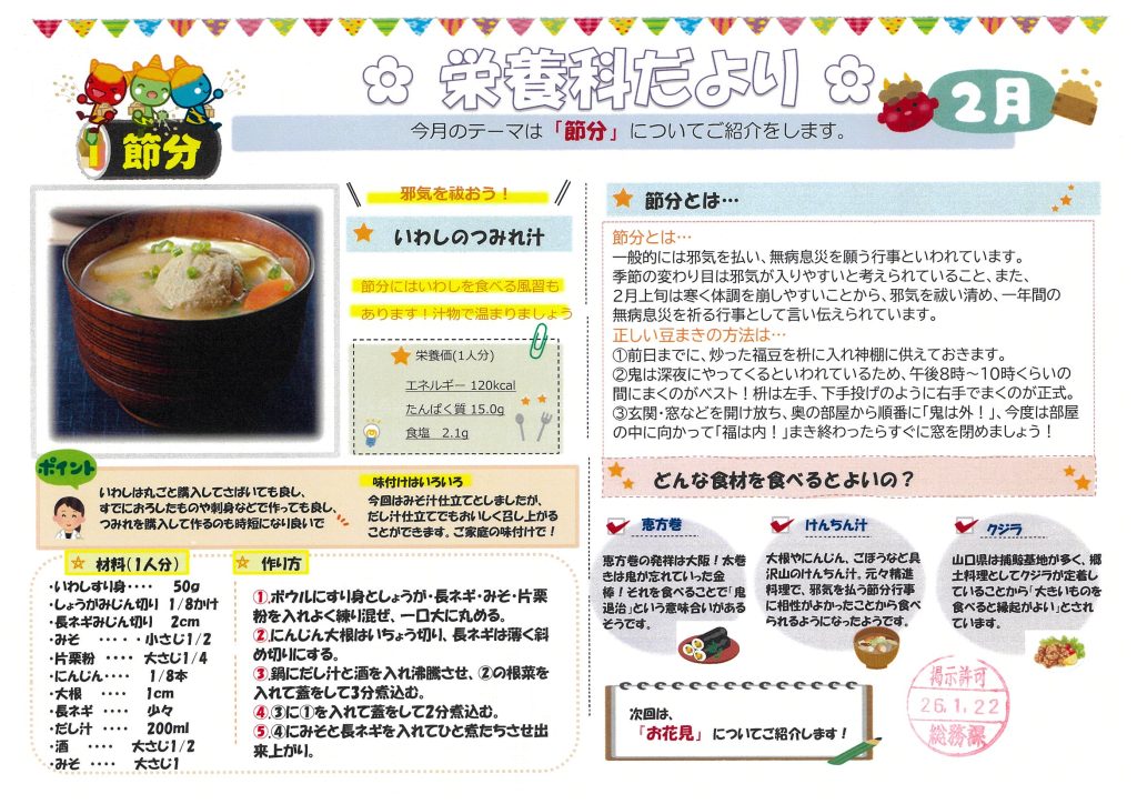 栄養科だより 2026年 2月号👹 テーマは「節分」いわしのつみれ汁