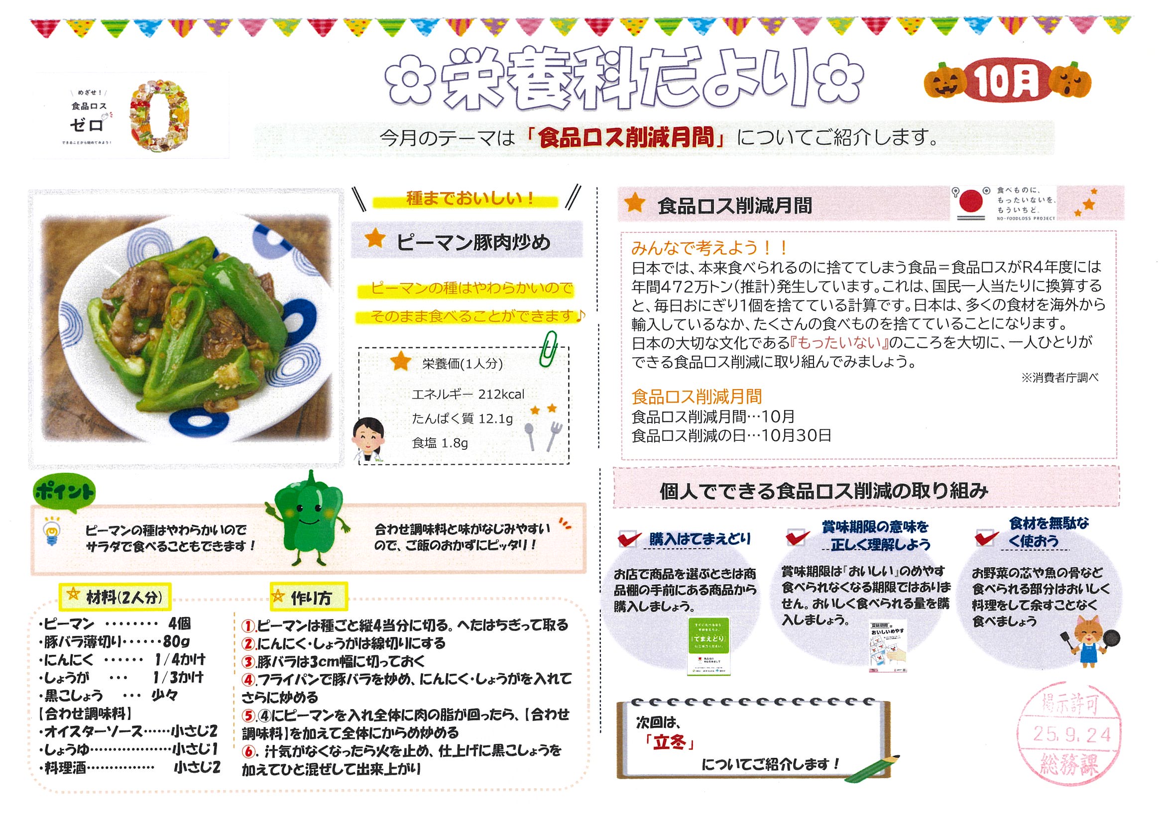 栄養科だより 2025年10月号🎃 テーマは「食品ロス削減月間」